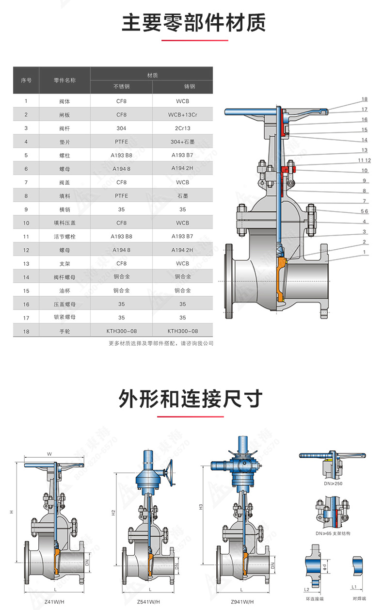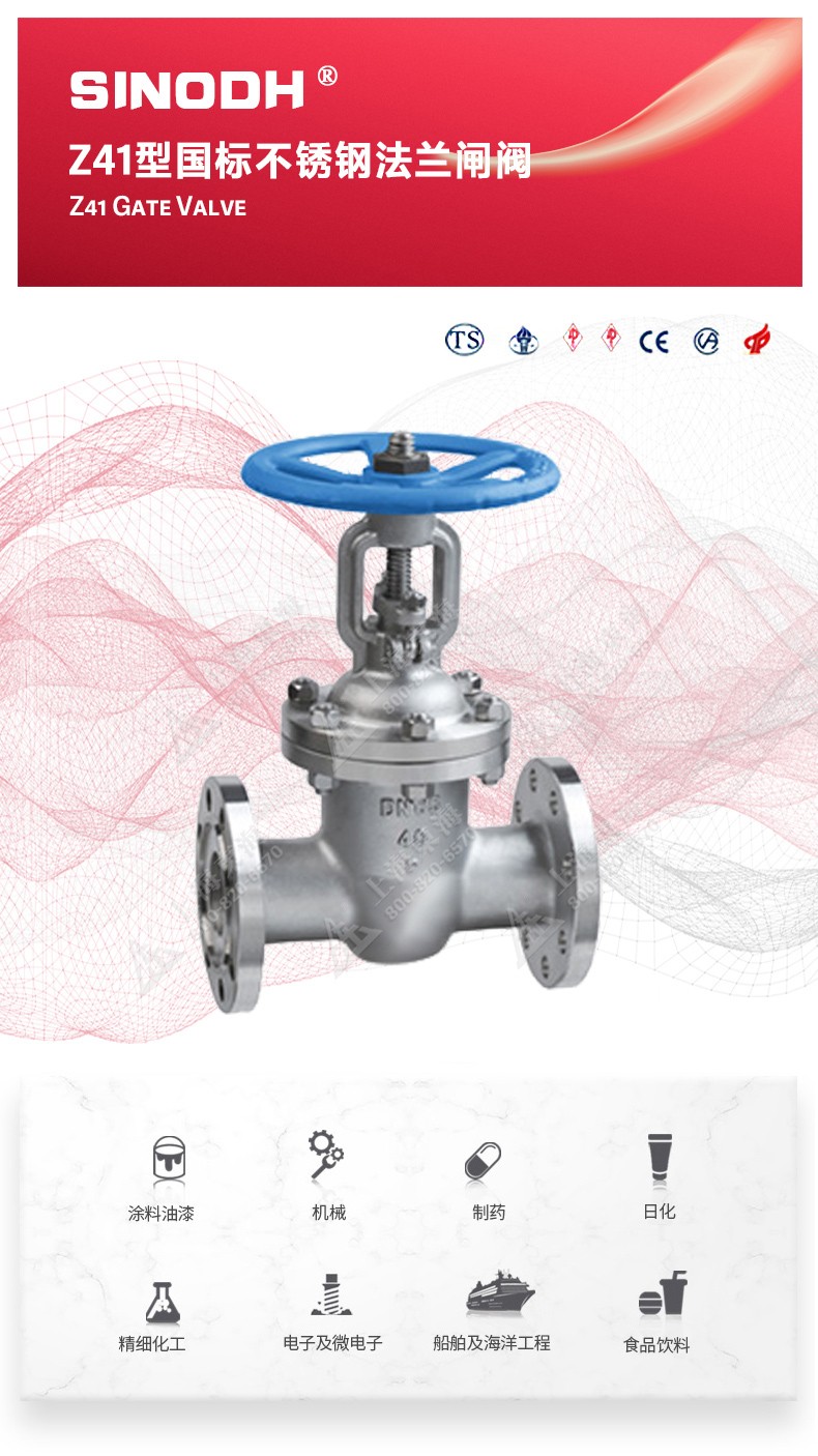 Z41型不锈钢闸阀,为米兰体育「中国」米兰官方网站自主研发生产。本产品是一种最常见的启闭阀,利用闸板的上下工作来接通(全开)和截断(全关)管道中的流体介质。此类闸阀广泛用于自来水、污水、建筑、石油、化工、食品、医药、轻纺、电力、船舶、冶金、能源系统等体管线上作为调节和截流装置使用。